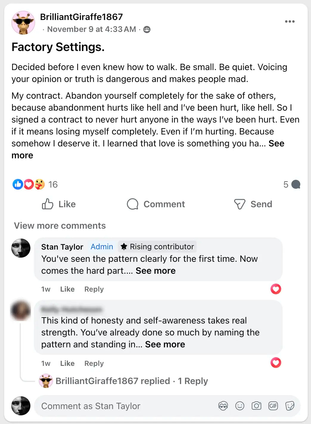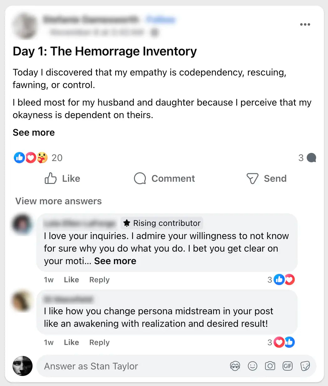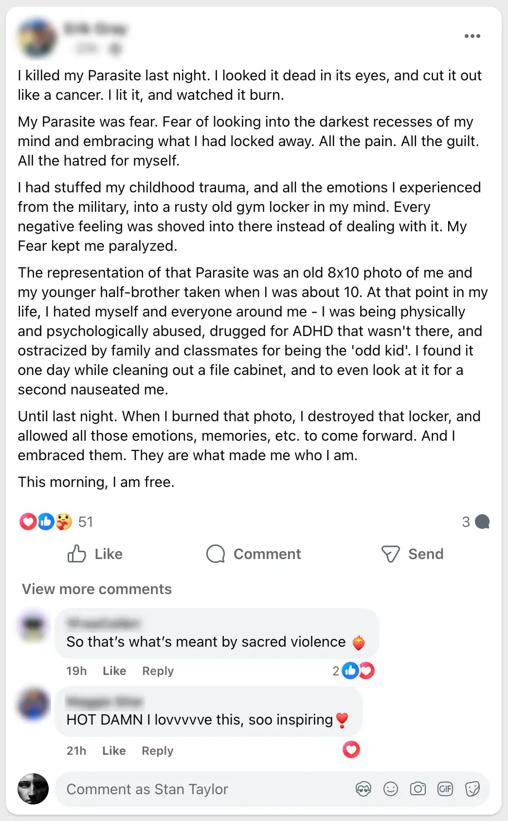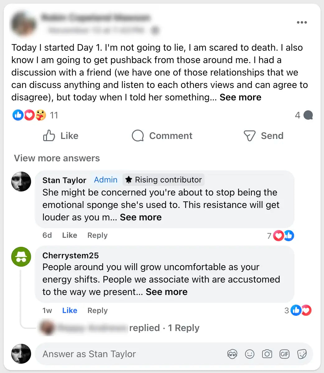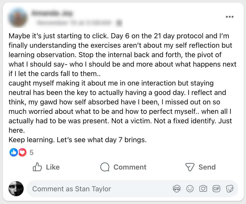 Yes. After purchase, you'll get an invite to a private Facebook group. But it's not for everyone. I created the underground community after readers started reporting the initial isolation of their awakening. Turns out, when you kill your parasite, the people still feeding theirs get uncomfortable. When you build your Fortress Mind, the Walking Dead think you've gone cold. You need others who get it, won't judge you for finally choosing power over politeness, and who understand why Chapter 5 made you cry and Chapter 13 made you dangerous.