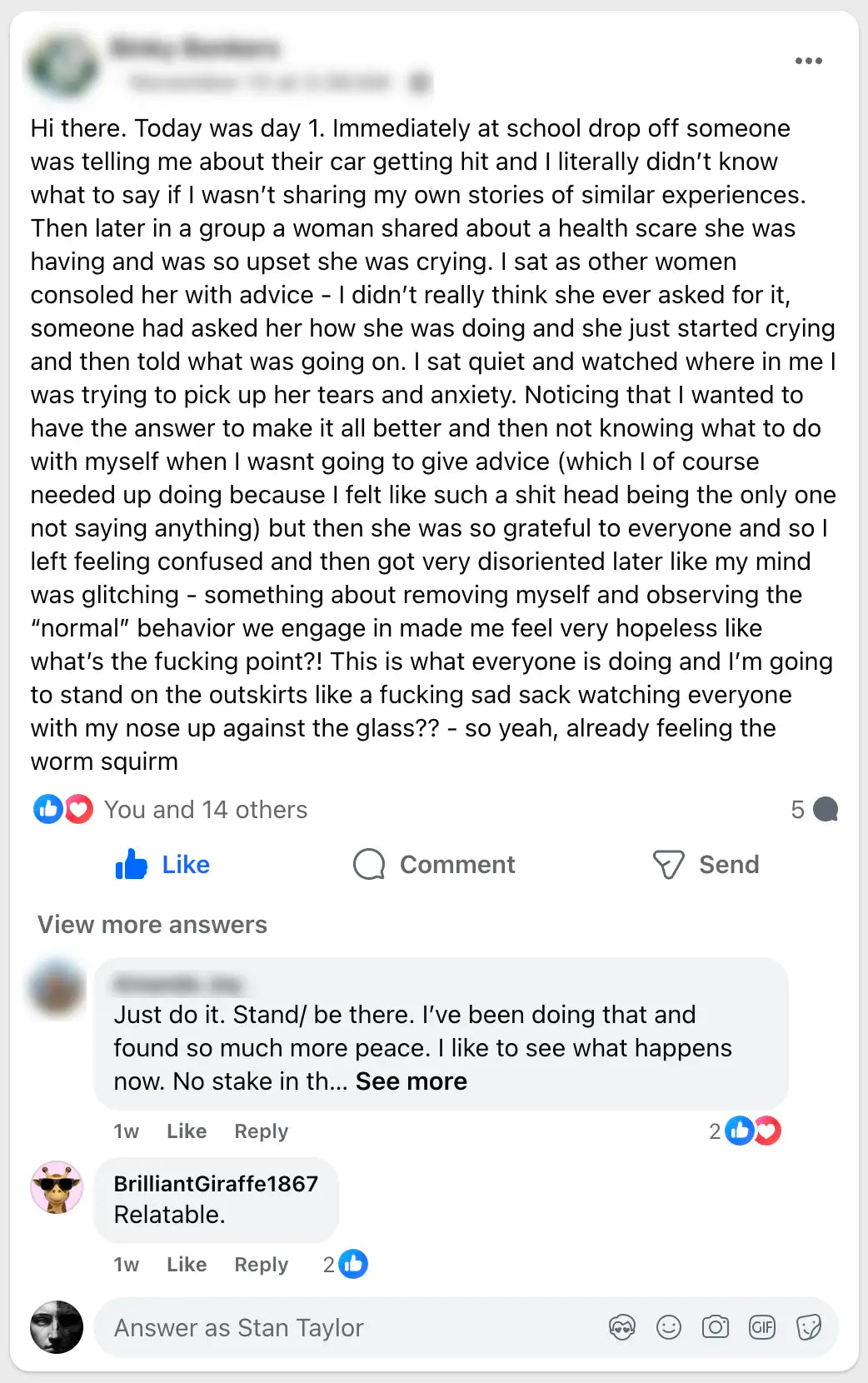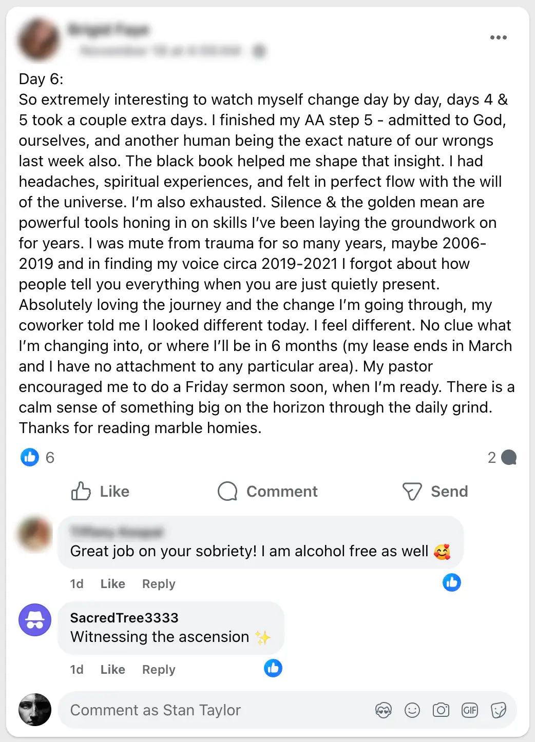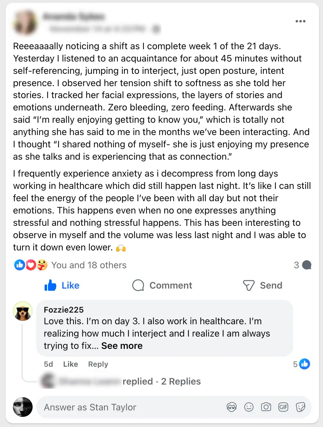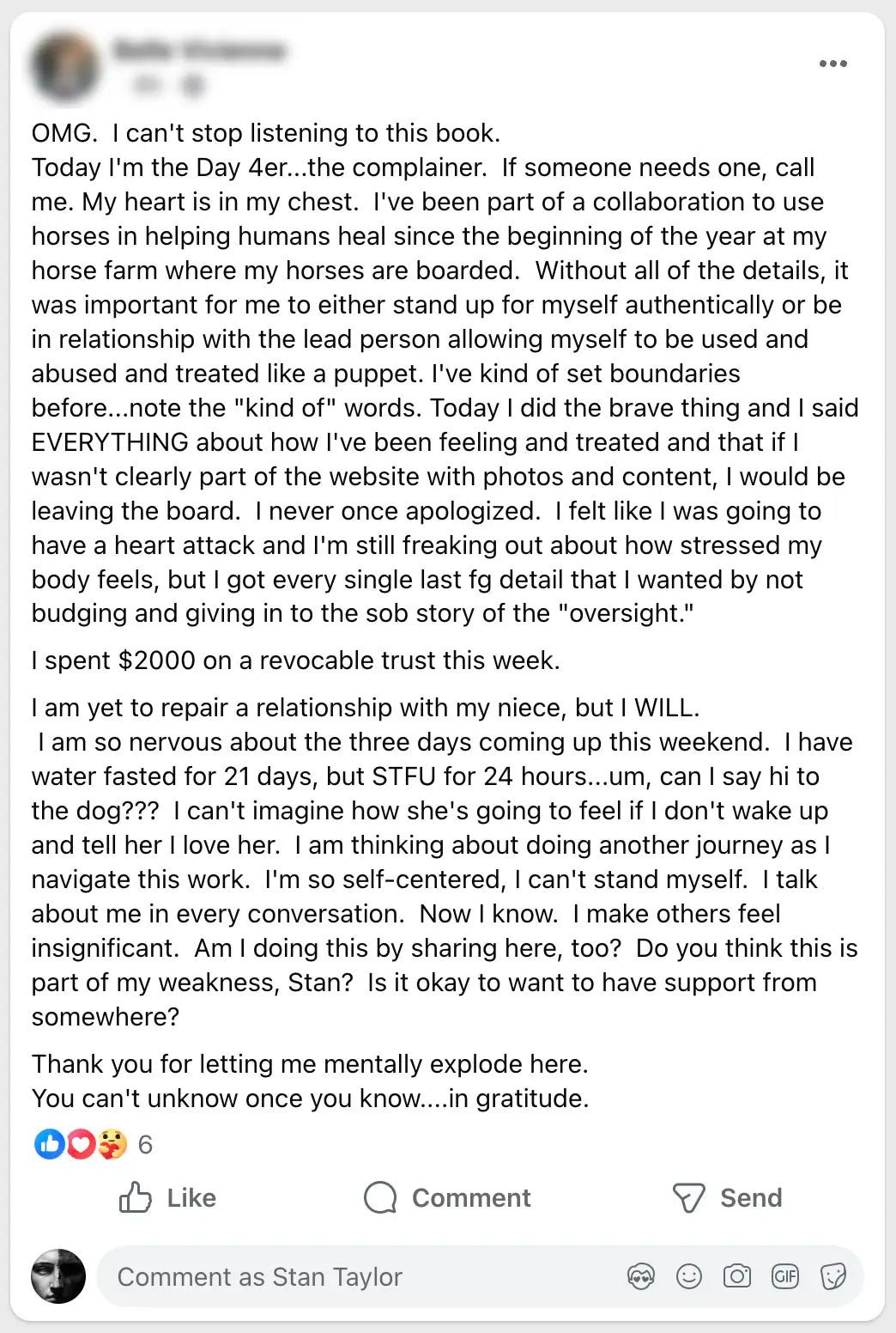 Yes. After purchase, you'll get an invite to a private Facebook group. But it's not for everyone. I created the underground community after readers started reporting the initial isolation of their awakening. Turns out, when you kill your parasite, the people still feeding theirs get uncomfortable. When you build your Fortress Mind, the Walking Dead think you've gone cold. You need others who get it, won't judge you for finally choosing power over politeness, and who understand why Chapter 5 made you cry and Chapter 13 made you dangerous.